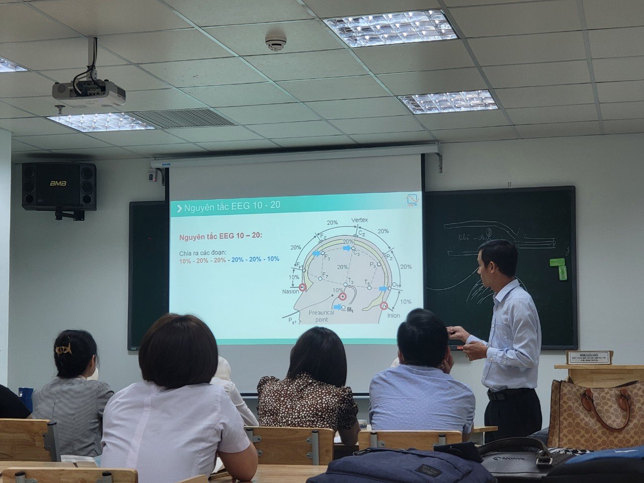 - Kỹ thuật thăm dò giấc ngủ: Các học viên đã được hướng dẫn chi tiết và thực hành về các kỹ thuật thăm dò giấc ngủ hiện đại nhất hiện nay (đo đa ký hô hấp, đo đa ký giấc ngủ,…) cho bệnh nhân.